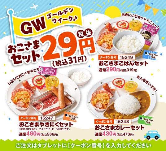 お子様セット3種 各29円(税込31円)でご用意致します。