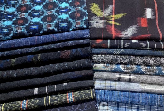 ▲伊予絣(いよかすり)は、愛媛県松山市で製造されている木綿の紺絣