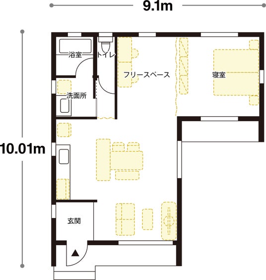 敷地形状や駐車場の場所など、状況に合わせて設計できる変形プランです。