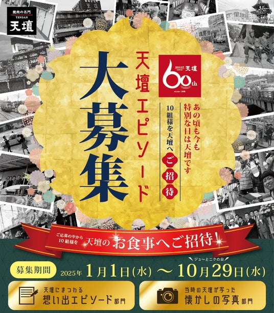 飲食事業やエンターテインメント事業等を展開する株式会社晃商(本社:京都市東山区、代表取締役:新井 義淳、以下「当社」)が運営する「焼肉の名門 天壇」は、おかげさまで2025年に創業60周年を迎えることができました。創業60周年を記念したメニューを関西の天壇7店舗で、期間限定で販売します。