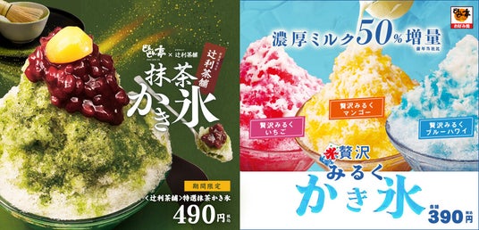 【どんどん亭】期間限定販売!<辻利茶舗>とコラボした特選抹茶かき氷と「贅沢みるくかき氷」が販売開始(2025/4/4)