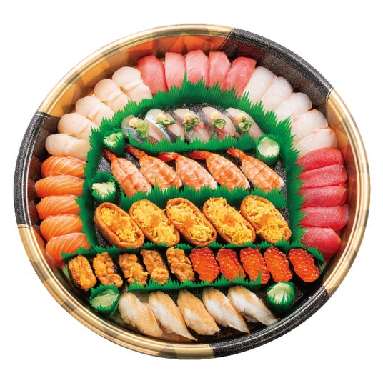 まぐろ/生サーモン/はまち/貝柱/穴子/茹で海老/コハダ/子持ち昆布/とびっこ/いくら