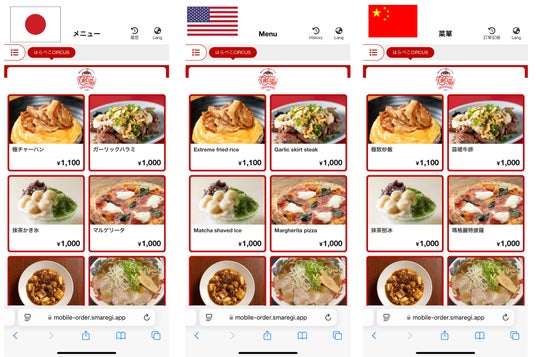 モバイルオーダーの注文画面イメージ(日・英・中)