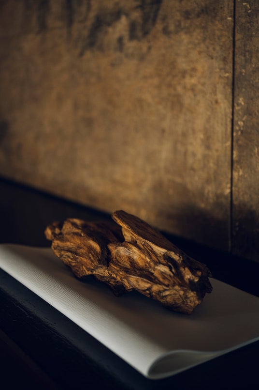 牡丹の間では、国内で初めてのお披露目となる『和香六木』(六種類の和香木)を香席形式で聞香していただきました。日本各地には、その土地の気候や自然環境によって独特の芳香を発する木々があります。それらは地域の生活や芸術、工芸などの文化に大きな影響を与え、幾つかは神聖なものとして重用されていました。それらの木々の中から六樹の薫りを選び、その香りを体験していただきました。