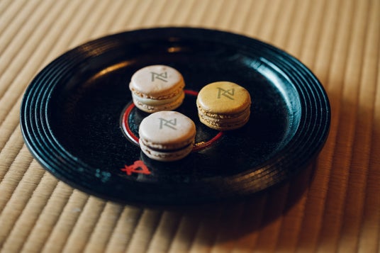 艸雷庵では、立礼の呈茶席で御凌ぎ後のひと時をお寛ぎいただきました。お抹茶とピエール・エルメ・パリ様のマカロンなどのマリアージュを体験していただきました。