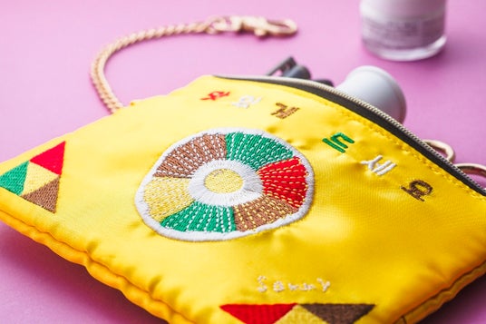 セミさんが「みんながハッピーになれるように」と考えデザインした、持っているだけで気分が上がりそうなかわいいポーチです。