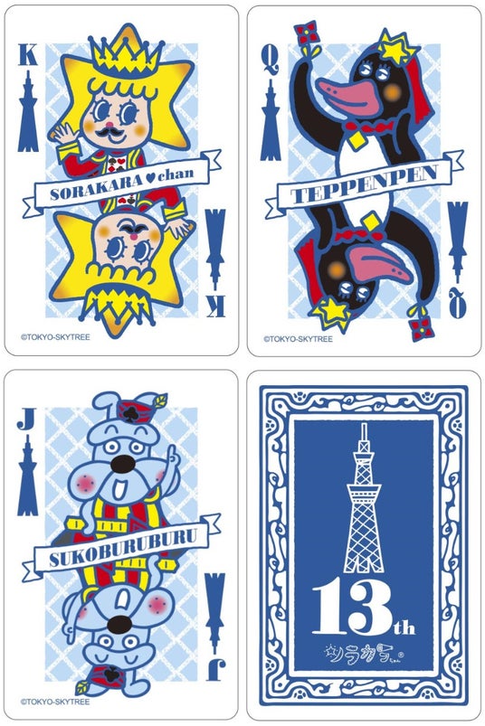 トランプの柄が全て東京スカイツリーオリジナルに!ソラカラちゃん、テッペンペン、スコブルブルと一緒に遊びましょう♪