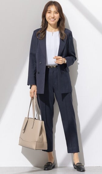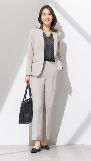 汎用性高くご着用いただける定番のテーラードジャケットやクロップドパンツに加え、トレンドの半袖シャツジャケットやメンズライクなベスト・脚をきれいに見せてくれるフレアパンツ・タイトスカートの5種類を展開。