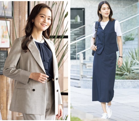 ▲(左)リネンライクセットアップ/(右)リランチェストレッチセットアップ