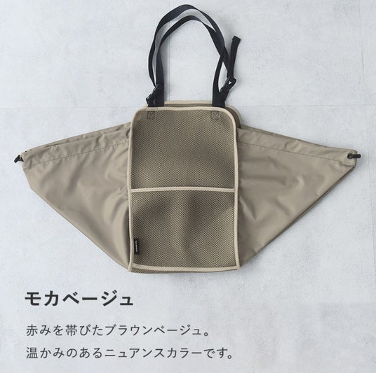 いつもなら車の座席に置くバッグも、まとめて収納できる「車用 ハンモックバッグ」。荷物をポンポン入れて車内すっきり、外せばトートのように持ち運べる、bon momentの新発売アイテムです。