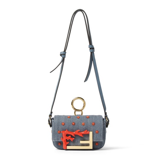 珊瑚と海にインスパイアされた本コレクションでは、コーラルはその鮮やかな色合いやモチーフとして各アクセサリーに遊び心を加えます。アイコニックな「ナノ バゲット(Nano Baguette)」を飾る中央の「FF」ロゴバックルは、片方の“F”が珊瑚モチーフで象られています。