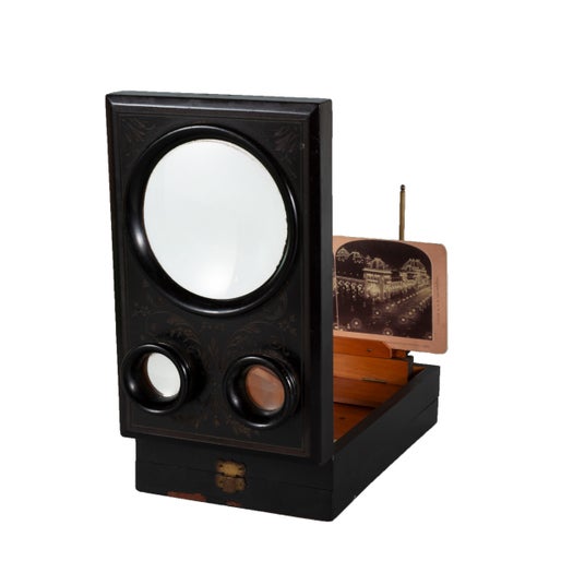 19世紀に写真が生まれて以来、細部を拡大したり、奥行きや立体感を出すなど、新たな写真の見え方を追求するためにレンズや鏡を活用した鑑賞装置が作られてきました。写真が普及していくと、これらの装置はおもちゃやお土産品となって、写真の楽しみ方を拡げていきます。本展では、写真を立体的に見るためのヴュワーや極小写真の鑑賞装置、写真を鑑賞するためのおもちゃなどをご紹介します。