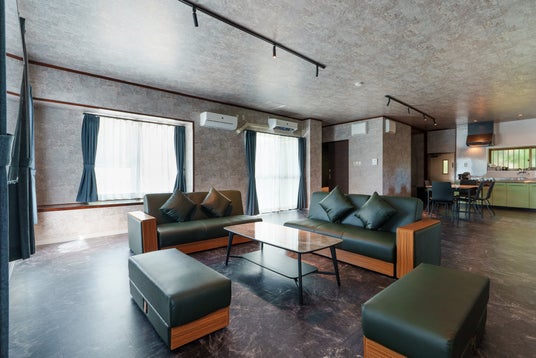 南ぬ浜ビーチへ徒歩圏内、市街地の好立地にありながら、大人数での宿泊が可能な庭付きの別荘型宿泊施設です。卓球やダーツのプレイングルームもあり、仲間と賑やかに過ごしたい方におすすめです。なかなか予約の取れない人気の宿です。