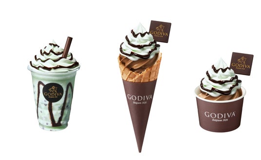 「ソフトクリーム チョコレート ミント(コーン)」「ソフトクリーム チョコレート ミント(カップ)」全国のソフトクリーム取扱店(https://www.godiva.co.jp/shop/a/aSCM/)※一部お取扱いのない店舗がございます。