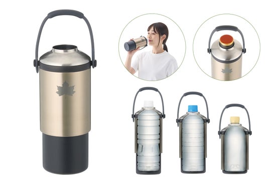 全体真空断熱構造により、ペットボトルやボトル缶飲料を保温・保冷できるボトルホルダー『真空「温・冷」ペットボトルシリンダー』を、様々なアウトドアシーンや普段使いにぜひともご活用ください。