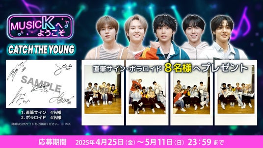 「Music Kへようこそ!」最新話更新を記念して、CATCH THE YOUNGの直筆サインとポラロイドが抽選で8名様に当たる豪華プレゼント企画を本日18時より実施。Music Kの公式X、および公式サイトをご確認のうえ詳細をお待ちください。