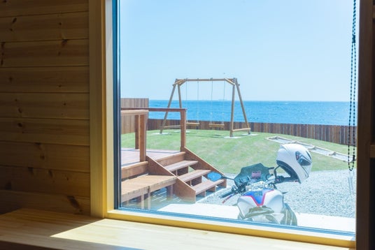 大きな窓から自分のバイクを眺めながら、ゆったりとくつろげる専用設計の客室。愛車と過ごす安心感に包まれながら、コーヒーを片手にひと息。バイク旅の余韻をそのままに、自分だけの時間を贅沢に楽しめます。