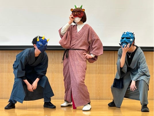 「現在」のブースでは、「大江山酒呑百鬼夜行」の様子など現在の鬼の姿を紹介。大阪・関西万博に合わせて妖怪造形家・河野隼也さんが新たに創作した酒呑童子のお面や衣装を展示する「フォトスポット」も登場。次世代へ鬼伝説をつないでいきます。