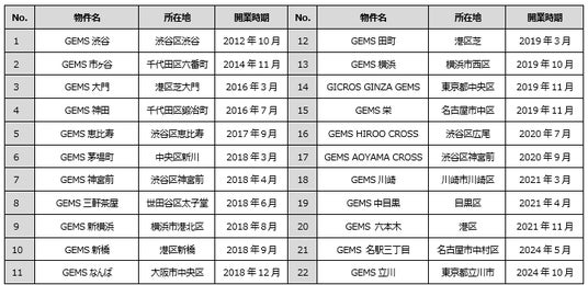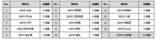 ※GEMS シリーズは野村不動産株式会社、野村不動産投資顧問株式会社が運用を受託する野村不動産マスターファンド投資法人及び野村不動産プライベート投資法人が所有し、野村不動産コマース株式会社が一括して施設運営を行っています。