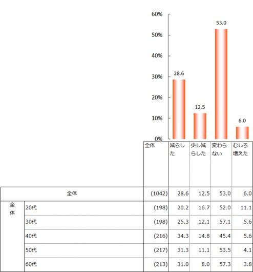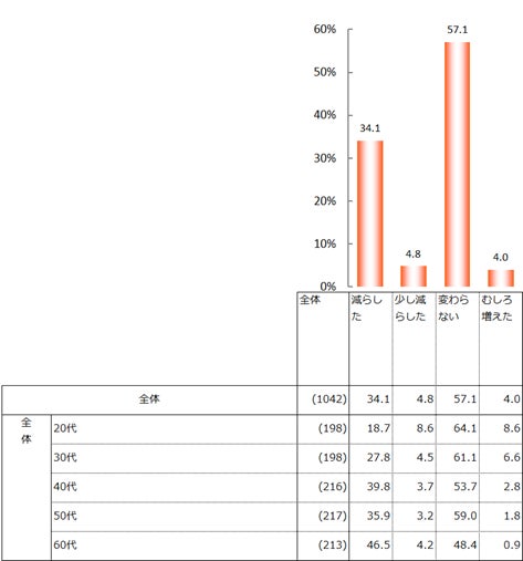 旅行費の高騰の影響で、国内旅行の回数を「減らした」が28.6%、「少し減らした」が12.5%となり、合わせると41.1%だった。海外旅行について「減らした」が34.1%、「少し減らした」が4.8%となり、合わせると38.9%が回数を減少させていた。