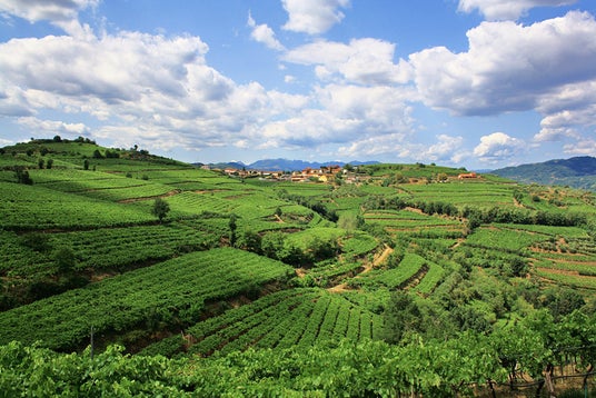 ソアヴェ・クラシコ地区の中心に位置するフィッタ村の景観。丘陵地にブドウ畑が広がる