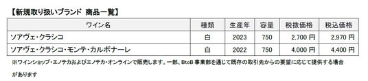 エノテカ株式会社(本社:東京都港区、代表取締役社長:堀 慎二)はイタリア・ヴェネト州のソアヴェ・クラシコ地区のワイナリー「スアヴィア」の日本正規代理店として、5月1日から2品目をワインショップ・エノテカおよびエノテカ・オンラインで販売開始します。