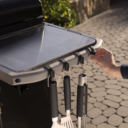 錆に強く熱伝導性に優れたカーボンスチール製調理用グリドルを採用しています。食材がこびりつきにくく、お手入れが簡単です。高い火力と最適化されたバーナーが提供する、均一な温度での調理環境を実現し、デジタル温度表示で、調理状況を明確に確認できます。サイドテーブル(左)は折り畳みが可能、サイドテーブル(右)の天板はサービングトレイとしても使え、Weber Works(ウェーバーワークス)という豊富なアクセサリーと入れ替えることもできます。広く機能的な調理スペースの確保や、調理器具を簡単に持ち運べる収納も可能です。本体はキャスター付きで、優れた移動性を実現します。