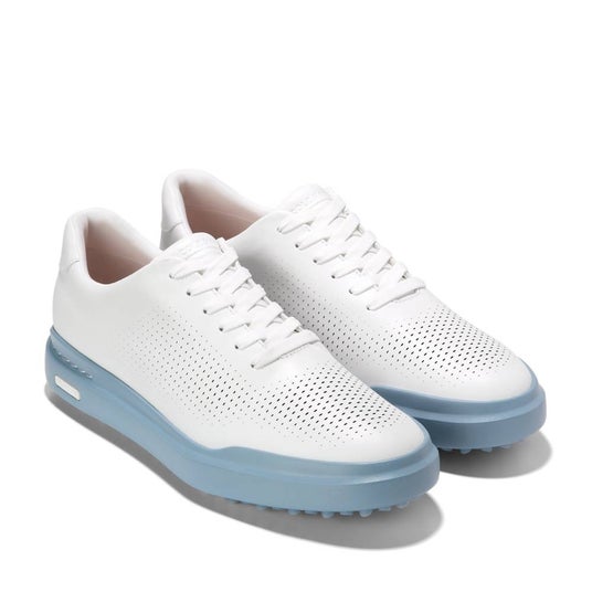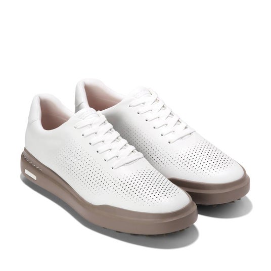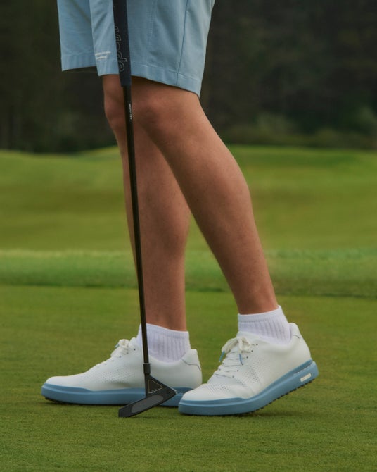 今季のゴルフシューズコラボレーション、メンズモデルには「GRANDPRØ RALLY LASER CUT(グランドプロ ラリー レーザーカット)」のアッパーデザインを採用。スポーティーな印象の中にも洗練された上品さを感じさせる一足に仕上がっています。アウトソールには、特許を取得したサイクロンスパイク構造(互い違いに配置されたラバースパイク)を搭載し、あらゆる地形において高いグリップ力を発揮。スイング時のねじれに対応する優れたクッショニング、耐久性、反応性も兼ね備え、パフォーマンスを追求するゴルファーに向けた設計です。