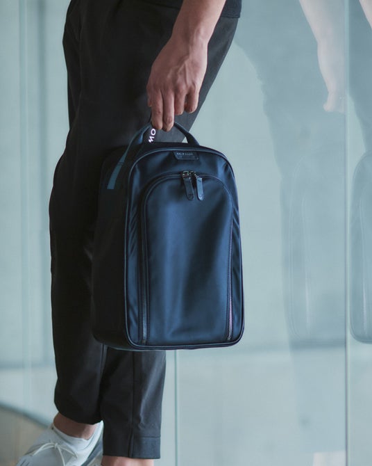 今回より新たにラインナップに加わったライフスタイルアイテムにも注目です。大小2サイズで展開されるトートバッグは、たっぷりと荷物を収納できる「ロッカーバッグ」と、グリーン上での持ち運びに適した「カートバッグ」の2タイプを用意。どちらも機能性とデザイン性を兼ね備えたアイテムとなっています。また、同素材で仕立てたシューズバッグは、内側に左右のシューズを分けて収納できる仕切り(パーテーション)を備え、移動時の使いやすさにも配慮。さらに、バッグシリーズとコーディネートできるよう、同じ深みのあるネイビーカラーで仕上げたレザー製のティーホルダーも展開。細部までこだわったアイテムで、ライフスタイルをより豊かに彩ります。