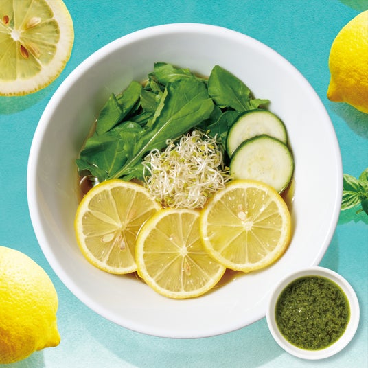 主役の瀬戸内産レモンは糖度が高く、優しい酸味とフレッシュな香りが特徴の完熟レモンです。スープには梅雨時期にサッパリと食べられるようにレモンの酸味をプラス。さらに皮までおいしいレモンスライスを3枚トッピングしました。ノーワックスの国産レモンだからこそ皮までおいしく食べられるサステナブルな一杯です。