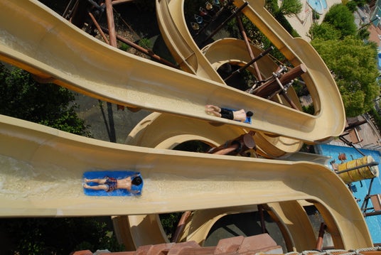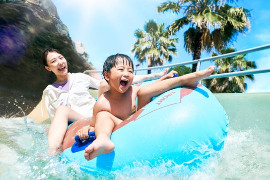 2人乗りの浮き輪に乗って、全長110mのコースを家族や友達と一緒に滑ることができます。
