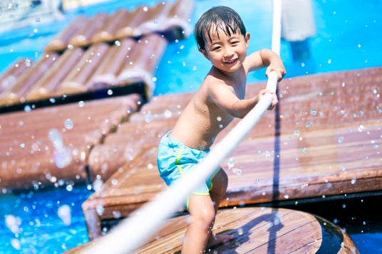 水深15cmの小さなプールと、水深30cmの流れるプールがあり、初めての水遊びにも安心なベビープールです。