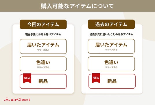 月額制ファッションレンタルサービス『airCloset』では、サービス開始当初より、レンタルで実際に着用しながら、その中で気に入ったお洋服をご購入いただく体験を提供してきました。「忙しい女性が時間をかけずにファッションのお買い物を楽しめるようにしたい」という想いから、お手元に届いたお洋服を、過去のものも含めて購入することができる設計にしています。これまで、購入できるアイテムの範囲は、サービス内でシェアリングされているものに限られていましたが、今回の機能追加により、新品のアイテムも購入することが可能になります。「気に入ったアイテムについては新品でも購入したい」というお客様のご要望にお応えし、機能追加を実施しました。