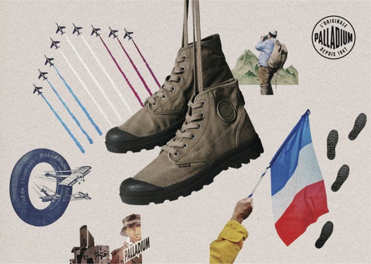 PALLADIUM(パラディウム)は、航空機専用のタイヤメーカーとして1920年代にフランスで創業。第二次世界大戦後、その技術を応用しラバーソールブーツの製造をスタート。フランス軍より、砂漠地帯で使用する軍靴というリクエストを受けて、デザートブーツの原型ともいわれる、ブランドのアイコン「PAMPA(パンパ)」シリーズが誕生。70年の歴史を経て、オーセンティック感と特徴的なソールに加え、最先端のデザインを合わせ持つフランス発ブーツスニーカーブランドとして、世界80ヶ国で展開しています。