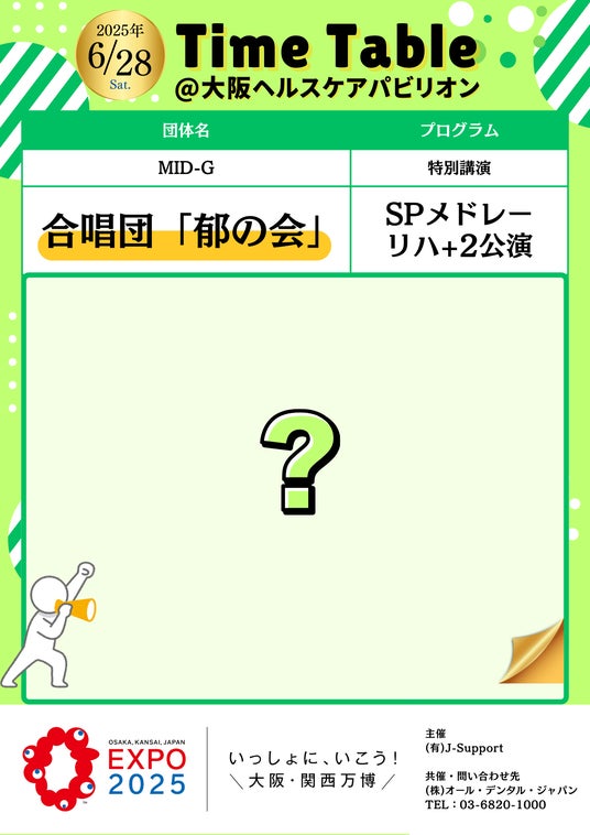 【東ゲート入ってすぐ右手側】大阪ヘルスケアパビリオンにて、有限会社J-Supportと株式会社オール・デンタル・ジャパン(ADJ)がタッグを組み、1日限定の特別イベントをプロデュース!