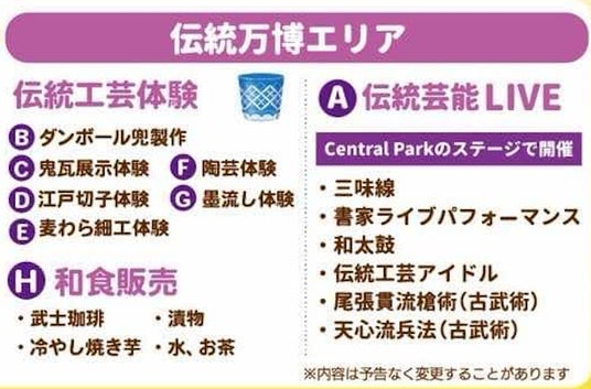 「伝統万博2025」は、5月6日(祝・火)に名古屋・メイカーズ・ピアのセントラルパークにて開催予定です。イベント規模の拡大とさらなる充実に向けて、引き続き支援者・出展者を募集しております。