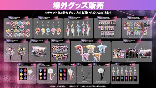 会場内では、すとふぇす実写ブロマイドを先行販売、場外では、すとふぇすオフィシャルグッズなどを販売いたします。