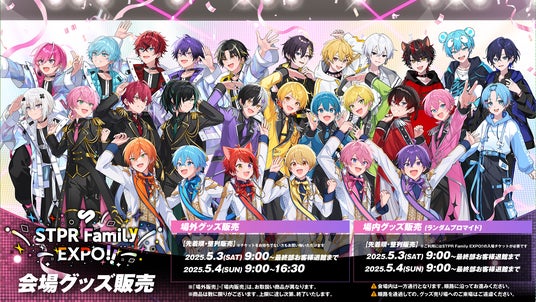 株式会社STPR (本社:東京都渋谷区 代表:柏原 真人、以下STPR)は、2025年5月3日(土)・4日(日)にぴあアリーナMM(神奈川県横浜市西区)にて開催する『STPR Family EXPO!!』の新たな情報として、エリアMAP、展示情報、グッズ情報を公開いたします。