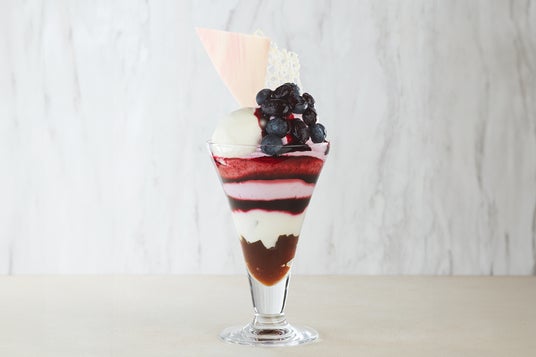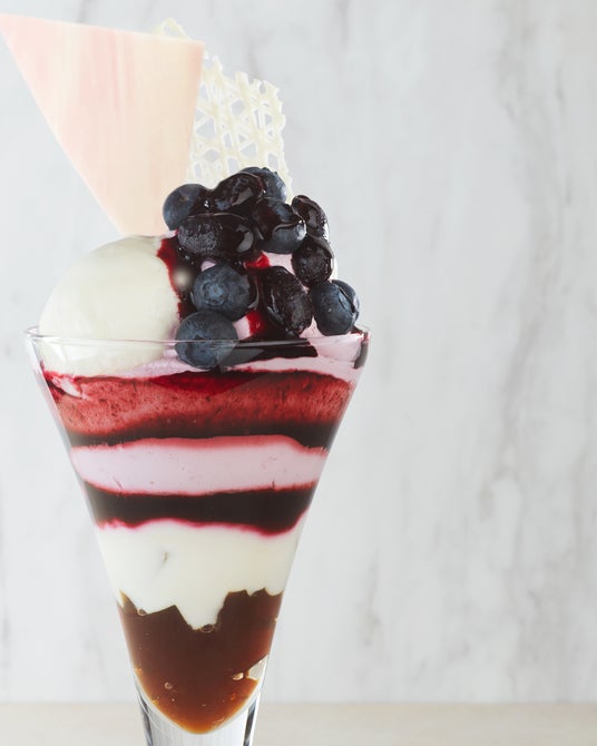甘酸っぱい北海道産ハスカップとブルーベリーにさわやかなヨーグルトアイスを合わせた初夏を彩るパフェ。