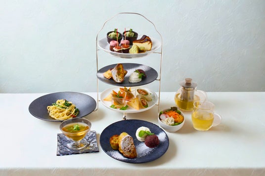 当ホテルが青森県に擁する直営農場「東北牧場」では、豊かな自然の中で力強く育った野草をはじめ、野菜、ブランド卵、小麦、果実などを無農薬・無化学肥料で丁寧に栽培しています。この度ご提供するアフタヌーンティーは、普段見過ごしてしまうような野草の豊かな風味を主役に、牧場の恵みをふんだんに使用した、滋味深くどこか懐かしい味わいが特徴です。八甲田連峰を望む大地の息吹と、それを育む人々の愛情が詰まった一品一品を、心ゆくまでお愉しみいただけます。