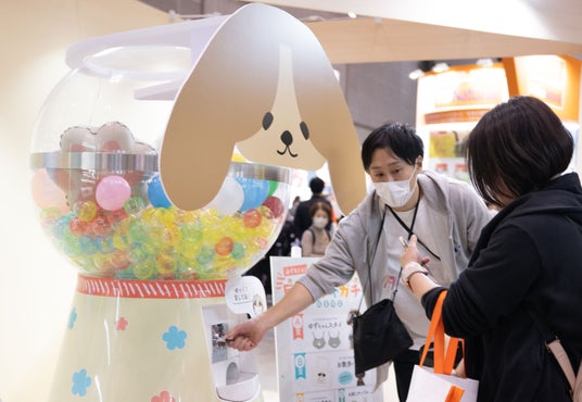 5.お買い物のあとは2m巨大ガチャ!ハズレなしのワクワク企画も大好評3,000円(税込)以上お買い上げの方限定で、ゆずちゃん巨大ガチャガチャ企画も実施!ガチャの回数は延べ500回以上を記録し、飼い主様とわんちゃんの笑顔がとても印象的で、お買い物のあとまで楽しめるブースとしてご好評いただきました。