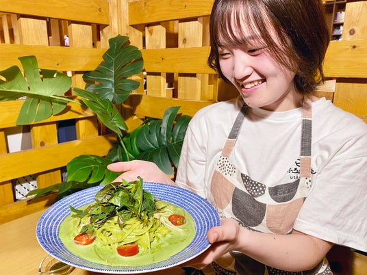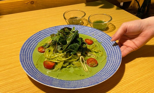 5月1日の新茶の日に、おふろcafe utataneで狭山茶の新芽を食べる「新茶ミルクカルボナーラ」の販売を開始します