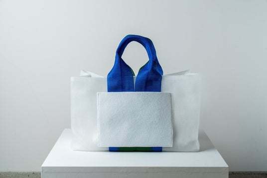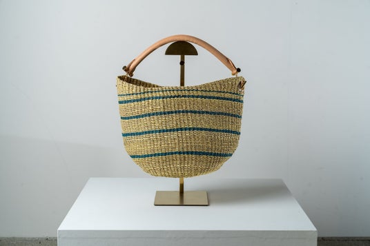 一つ目は、鞄専門企業「MORITA」と台湾のクラフトユニット「本質創作室」の李雅靖氏が企画し、フィリピンの職人の手編み技術とMORITAの持ち手技術を融合させた三地域連携作品「三つの手が結ぶ ― 豊岡の革取手 × 台湾のデザイン × フィリピンの編み」。バナナシルク素材を用いた本作は、台湾や東南アジアの伝統技術を次世代につなぐ役割も担っています。