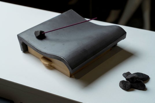 「香る瓦 ― 収納付き瓦の線香台」は、淡路島の線香工芸に着目し、香りの文化を瓦に託した作品。淡路瓦を小型化し、重ねることで屋根の風景を表現しました。下部にはお線香の収納機能、基台には再生瓦の砕石を用いて、実用性と自由度を両立させています。