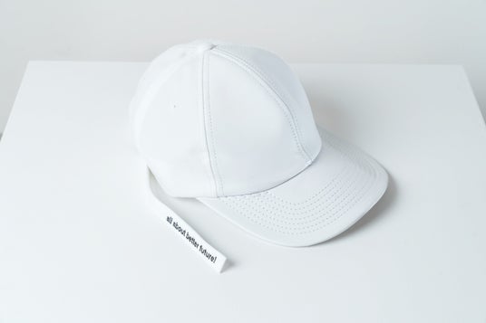 白のハーモニー ― 神戸牛革とリサイクル素材のキャップ