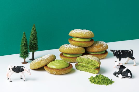 ふんわりふわふわなパンケーキに、あさぎり牛乳をたっぷり使った濃厚ミルククリームをサンドした、ミルク感たっぷりのパンケーキサンド。期間限定の〈静岡抹茶〉は、スポンジとクリームに抹茶を加え、ふくよかな甘みと、華やかな香りを楽しめるよう仕上げました。