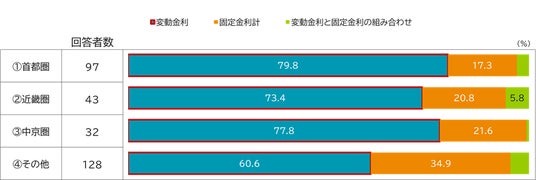 ●金利形態は、3大都市圏で「変動金利」が7割以上、それ以外のエリアでは約4割が「固定金利」を利用