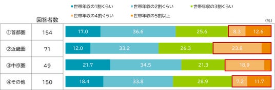 返済比率※1については、どのエリアも世帯年収の3割以下が主流ですが、20%前後の方が世帯年収の4割以上となっています。