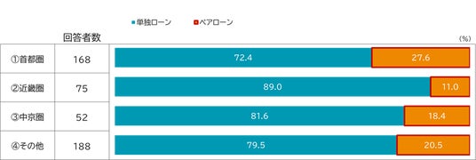 住宅ローンの借入形態については、首都圏ではペアローン利用が約3割と最も高い結果となりましたが、中京圏や3大都市圏以外のエリアでも約2割が利用しており、ペアローン利用率の高まりは全国的な潮流であることがわかります【図表5】。