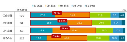 1.首都圏:東京都・神奈川県・埼玉県・千葉県 2.近畿圏:大阪府・京都府・兵庫県・奈良県 3.中京圏:愛知県・静岡県・岐阜県・三重県 4.その他:1.~3.以外の地域